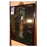 Unique Vintage Framed Polychrome Painting on Glass of Traditional Lady in Chinese Attire 23"x17"
