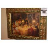 Vintage Framed Wall Art in Gold Frame - "The Dinner Party" Print by Jules Grun 18"x22"