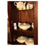 Vintage Semi Vitreous Century Service Set of China "Autumn Gold" Serving Pieces: Tea Pot, 3 Creamers (2 style), 3 Lidded Serving Bowls, Salt & Pepper Set 10 Dinner Plates, 4 Salad Bowls, 15 Dessert Pl