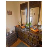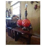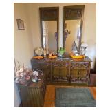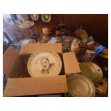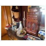 Table Lamp, Decorative Plates, Glass Plate Set, and Cabinet
