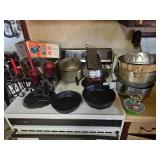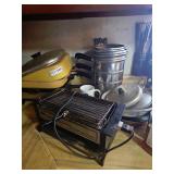 Assorted Kitchenware Lot: Frying Pans, Steamer, and Indoor Smokeless Grill