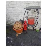 Metal Plant Stand with Candle Holders and Decorative Chicken Basket