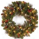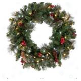 24 in. Pre-Lit Spruce Wreath+Clear Lights,