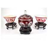 Murano Tre Fuochi Wine Glasses With Gilt Stems