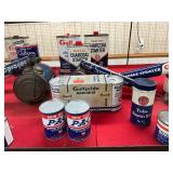 Metal AC Spark Plugs Tin, AC Spark Plug Boxes, Delco Battery Power Box, and National Oil Seals Box