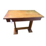 ANTIQUE OAK 1-DRAWER TABLE W/ BRASS PULL - APPROX. 33.25” TALL X 41.5” LONG X 25.5” DEEP