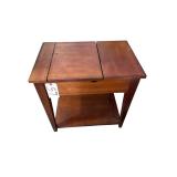 WOODEN SIDE TABLE W/ FLIP-UP TOP AND ELECTRICAL OUTLETS APPROX. 24” TALL X 16” DEEP X 32” (OPEN)/24” (CLOSED)