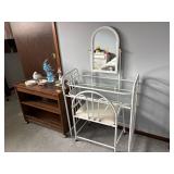 white metal dressing table with mirror and chair