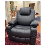 Deep blue microfiber-like fabric dining arm chair…..does show wear from normal but is a sturdy frame piece….27 x 19-1/2 x 19 tall to seat (40-1/2 tall overall)