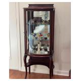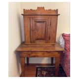 Vintage wood corner cabinet with mirrored door and 2 shelves…..22-1/2” tall