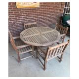 5-piece outdoor patio set - includes round table with umbrella slot and 4 arm chairs…..48-1/2”D x 29” tall - each chair is 22-1/4 x 19-1/2 x 17 tall to seat (35-1/4 tall overall)