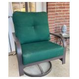 Lightweight wrought iron arm chair…..needs re-painted and cushion cleaned…..28-3/4 x 22-3/4 x 13 tall to seat (31 tall overall)