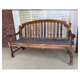 Teak wood outdoor bench….weathered look and sturdy piece…..60 x 18 x 17 tall to seat (37-1/2 tall overall)