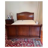 Very nice looking queen size cherry sleigh bed with adjustable mattress…..ONLY THE HEAD OF THE MATTRESS IS ADJUSTABLE…..bed does show blemishes but this is still a beauty and fully functional
