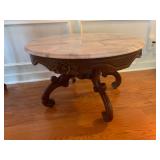 Antique Victorian Rococo Style Parlor Table Featuring a Marble Top & Carved Wooden Apron