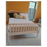 Crate & Barrel Jenny Lind White Wood Spindle Kids Bed, known for its iconic turned wood spindle design. Overall Dimensions