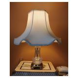 Mid-Century Hollywood Regency Crystal Boudoir Vanity Lamp. 19" T, Shade is 16" across at bottom.