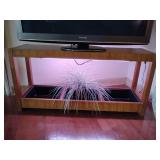 Indoor plant grow light system designed to provide artificial sunlight for houseplants. Wooden console table/planter box designed to hold plants. 24 1/4" T x 50" L x 14" Deep. Grow light in top, 3 pla