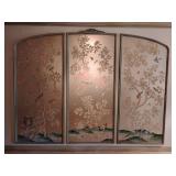 3 Gorgeous Champagne Chinoiserie Panels, they are large, middle panel is 95" L x 41" W the top is curved, the side panels are 92" L on the long side and 41" W. They are framed and hung, will take two