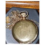 Antique Elgin 7 jewel, size 0s pendant watch with 14K gold filled case on 48 in watch fob chain. See all photos.