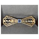 Gold color antique pin. Unmarked and non reactive to magnet. .75 in tall 1.35 grams