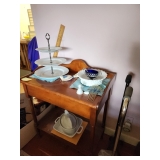 Vintage Ball Aqua Glass Canning Jars with Zinc Lids and small crocks