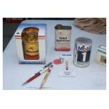 MOBIL OIL TRAIN AND METAL ASHTRAYS