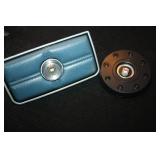 VINTAGE AUTO GREASE CAPS AND CAR EMBLEM