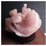 Pr of Carved Rose Quartz Carvings of Quan Yin Figures