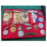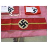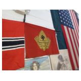 Uniforms and flags: Civil War Majors uniform, Civil War Artillery uniforms, 5 original Civil War uniforms , Civil War boots, socks, canteen, backpacks, toothbrush, soap, mess kits, 71st New York National guard 1880 uniform, WWII uniforms, 8 Nazi flags, one Nazi flag captured with American signatures on it. Nazi armbands, Nazi WWII banner, souvenir set of 6 flags WWII, WWI comfort bags