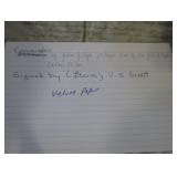 Terms: cash check or credit, all items will be sold without reserve, preview day prior from 9 am to 5 pm ---cause day of auction authentic paperwork will not be available to touch. Online bidding will be simulcast with live bidding, 10% buyers premium on all sales. Internet bidding will have 17% buyers premium plus actual cost to ship the items.