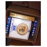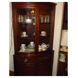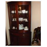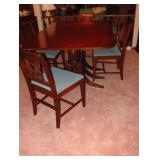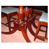 BASSETT ANTIQUE DINING ROOM SET (INCLUDES TABLE, 4 CHAIRS, 2 LEAVES, PADS, TWO SIDE ROUNDED CHINA CABINETS AND SERVER
