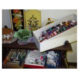 LOTS OF SEWING NOTIONS, MATERIAL & YARN & KNITTING SUPPLIES