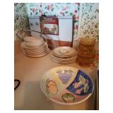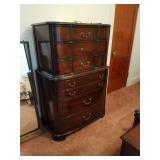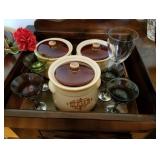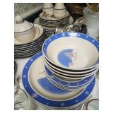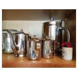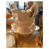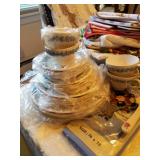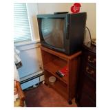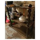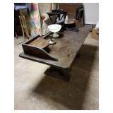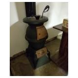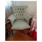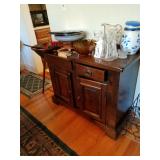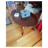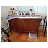 This little house is packed with things that you may find useful or beautiful. Sunporch: - Modified mid-century TV cabinet with sliding louver doors - Pair of rush-bottom chairs - Leather top occasional table - Exercise bike Living room: - Fur jacket - Pair of sofas for reupholstery project - Pair of antique mahogany chairs with recent blue on blue upholstery - Oval coffee table and end tables - Beautiful milk glass lamps - Entertainment center and TV - Fireplace tools and screen - Small decoratives including Lenox Kurt Steiff collection pieces - Antique dolls Dining room: - Trestle table and six chairs with spindle details - Breakfront with amber glass doors - Small sideboard - Dry sink - Wedgwood china - Spode Christmas china - Many small entertaining pieces including some crystal Kitchen: - White and blonde bistro set for two - Cuisinart coffee machine -Microwave, toaster etc. - Assorted glassware and ceramics - Silverplate coffee set - Wheeled cart Bedroom 1: - Full bed with headboard, footboard, mattress and box spring - Dresser with mirror -Chest of drawers - Pair of nightstands - Pair of brass lamps - Chair - The collection of costume jewelry will be brought out and displayed Bedroom 2: - Bedframe with headboard - Dresser with mirror - Chair -Pair of nightstands - Pair of lamps - Down comforter Basement: - Dark wood dining room table and chairs - Sofa - Armchair - Telephone chair - Assorted small tables - Pot-bellied stove - Cumberland "Brambleberry" china - Assorted kitchen wares - Computer desk - Christmas decorations