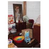 MCM Bench, Liquor Cart, Sofa, Beds, Dressers, Lamps, Desks, Office Chairs, China, Glass, Dolls, Books, Colletables, Clowns, Dinning Cabinet, printers, file cabinets, barware, Clocks, Baccarat Glass, Pac Man Machine for parts, chandelier, Frigidaire refrigerator, Kenmore Elite Washer, Kenmore Elite Dreyer, Hess Trucks, Tonka Trucks, Singer Sewing Machine, Records, Antique Cash Register, Antique Mahogany Headboard, Computers, Tea Cup Collection, Rio Electric Wheelchair, Records, Lots of items new still in boxes, Jewelry, new games, new toys, Tons of Christmas items, House Hold items and soooooo much more. All is 50% off marked price. |