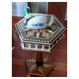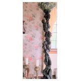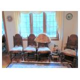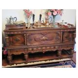 Auction Open to the Public Partial Listing: Ornate antique dining room suite: draw leaf table, six chairs and buffet; Formal French style settee set; Antique double curio sideboard, marble top and mirror carved floral basket design; Pair occasional chairs; Pair antique balloon back side chairs; Pearl inlaid octagon table; Art deco wall clock; German cuckoo clock; Antique mantle clock; Tea cart; Leather top side tables; Antique wood rocker; Eastlake style occasional table; Queen Anne style four poster bed with matching night stand, chest & high boy; Drop front desk; Hanging iron vintage light; Hanging antique lamp; Set 5 triangle inlaid tables; Arabesque / ottoman tables with inlay; Small marble top table; Black lacquer small chest; Vintage wood frame sofa; Red bedroom set with dresser, chest and night stands; Humpback trunk; Camel saddle stool; Plaid sofas; Vintage red bar and stools; Pilgrim glass Cranberry floor column pedestal (about 30”); Large cranberry floor vase; Pair French style arm chairs; Cast aluminum Bruce Fox Design large (approx. 36”) turtle server with cutting board; Silverplate tea set on tray; Frankart Nymphs art deco black candlesticks; Cranberry frosted “bows & birds” vase; Cherub and grape column floor lamp with leaded glass shade; Gold framed mirror; Jade colored stone antique dial phone; Collection of art glass; Floor jardinières; Piano light; Large elephant figurine and many elephant deco items; Brass figurines; Hand carved wood figurines; Bookends; Cloisonné© candlesticks; Vases; Brass candlesticks; Jade colored stone top brass occasional tables; Nao, Zaphin, Tengra and Lladro figurines; Table lamps; Large selection area rugs, novelty rugs; Silverplate stemware; Purple glass cruets; Porcelain coffee service set; Chintz plate; Royal Copenhagen; B&G holiday plates; Five framed Rolf Lidberg troll family prints; Necchi sewing machine; Gum ball machine; Decorative duck decoys; Pair wood carved cranes; Vintage recliner; Cobalt blue glass basket; Flatware with case; Hanging pool light; Brass fireplace tools; Pair pillar handle holders; Vintage table lamps; Delft blue collection; Pool cues; Vintage Delta lantern; Small knight on horse sculpture marked Depose Italy 113; Vintage Norsk coffe and tea set; Jewelry: Squash blossom, sterling, vintage items and costume; Outdoor deco including cement eagle, cherub, animals and more; Cement bench; Tanning bed; Upright freezer; Washer & dryer; Hand and power tools; Garden tools; Large selection vintage and other clothes; More.
