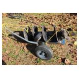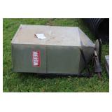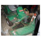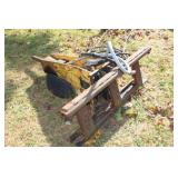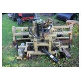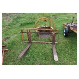 3pt. & Tractor Related 3pt. Back blade plow, (6) 40kg Ford tractor weights, Forklift forks, front end bucket, Land Pride 3pt. pull behind cultivator/ roller, New Holland front end bucket, Large Ford pull behind back blade, 2 Stainless steel gravel spreaders, truck bed spreader- without fan attachment, 3pt. aerator, front end Grapple bucket #500435, 3pt. rake, lawn roller, (2) 3pt. Fertilizer spreaders- one junk,