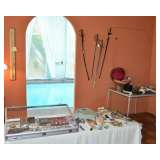 Hollywood Hills Estate SaleMarch 30-31, 2013 Sat-Sun 8am-4pm The owners resided in France in the 50’s. They moved in to this house in the early 60’s. And most of the furniture, art and other house contents were brought with them to the States. The 6500 sq foot house will be demolished. All outside and inside fixtures and structures can be sold. Everything you see in the pictures and more - is for sale. Antique and vintage French and other furniture. Burl wood Armoire Louis XV 18th Century Elm & Burl La Rochelle (84 inch height 56 inch wide). French "of white" bedroom set. Antique in very good condition Dining room table signed “T. & P. Smith 3636 Glasgow†- mechanically adjustable with handle – extendable: extended 83†long, Closed 64 inch long, 53 ¼†wide, 29 ¼†high. Vintage Backgammon Game Table with Onyx Base Top and Bakelite Chips. Side Tables 2 by Thomasville, Antique Beautifully Hand Painted Desk, Vintage Desk “Serenata†by Kent Coffey. Eames Era Rocking Chair – Mid Century Modern, Herman Miller Chairs – Mid-Century Modern, Antique Chest – by Matter Furniture Grand Rapids Michigan, Antique baby crib, French cooper pots with an impressive pot rack. Mid 19th century Victorian Burled Elm travel/portable writing desk, French wood carved and chromed 18th century Mascaron – amore’s face. Spanish colonial wood carved 19th century small angels. WW2 chest. Art, signed art (Marc Chagall lithograph, John Whitmore American Contemporary , Etchings – Leitzelt and many others. St Michael 18th century statue (Michael the slayer of the Moores) with a sward in his hand. Italian wood carved Amore Mascaron 18th century. French Metal basin console Rococo style cast iron with mirrors fully plumbed (it is attached but easily removable). European Icons. 19th century English regency style carved Cherry armchair. Jewelry (not all of the jewelry is in the pictures), “Community†Silver flatware set, paper weights, chandeliers, Table lamps, Mirrors, Antique and vintage, art, photography and first editions Books. Antique iron, mixer and etc., Records LP’s and 45’s. A large collection of antique and vintage cook books. Musical note song and music books, Sewing Machine “Elna†Switzerland. Refrigerator, Aman ARB 2107AW, Freezer Frgidaire 15.6 cu feet volume. Washer and Dryer. Collection of bronze Bells. Japans antique Harpoon Iron fishing gear set and other Japanese antiques. Collection of Japanese wood block prints (1834-1914). Oven Universal Chief by Waste King Universal Gas Oven/Stove/Grill/Cooking top and the ventilation system in very good working condition 60 ¼†wide, 32†deep, 47†high Highest point. French Antique Clocks circa 1760-64: Fcois Mache a Ayltre and R. Houdin a Coucon d’Aunis. Collection large antique candleholders. Fire place mantel dining room (Victorian): 69 ¼†wide – wall part, 60†Shelf wide, 55 ¼ Wall part high, 17†deep entire assembly (shelf), 32 1/8 wide fire place opening, 33†fire place opening high. Fire Place mantel (Louis XV) - Living Room: 57†wide top arch opening, 48 ¼†high, 37 ¼†opening width, 31†opening height – apex of arch, four screws removable (adjustable). Antique fireplace cast irons and other accessories. Much more furniture. Musical instruments: Kimball Baby Grand Piano by W.W. Kimball Chicago, Brass Bugle Horns Military/Scout , Kalimba – the Hugh Tracey South Africa 1966 17 note treble instrument, Harbert - Italiano Milano. Antique French Mercury Barometer, Collection of vintage and antique Scales: W & T. Avery Class I, Palouse Mfg Co Chicago, F. Hopken & Son, T.W.S., Bristol, Herbert & Sons, Wand 7 IE Makers Birmingham 15 lb, Hunt & Co London, antique art deco scale, English cast brass “Bell†weights Herbert & Sons and more. Antique and Vintage Mexican Pottery, Antique shoe molds, Large beautifully decorated Cabinets - Persian Rugs. Antique Swards and knifes inclusive Mansfield & Lame Foresdale U.S. 1865 C.E.W. (owners initials stand for Charles E. Wilson Chief Government Inspector) sward. Antique Hat with original Dundee Midland Railway leather box by Patrick Thompson from Christies London), Japanese bronze Yetate, Clocks: Jaz – France, Schatz – Germany and more. Vintage Radio – Bi-Ampli. Keystone Regal K109 8mm projector, Keystone 16mm Model 160, Graig RR tape recorder. Welcor RR tape recorder, Kodak Carouse 760H, Photo and video vintage tripods and screen. Kitchen full of staff. We cannot describe everything – and there is so much more. Please see pictures.