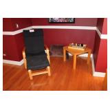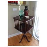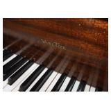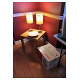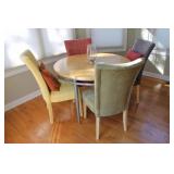Laminate dining table w/ 4 fabric upholstered side chairs Assorted decor Vintage Wurlitzer butterfly piano Vintage end table Kitchen