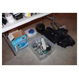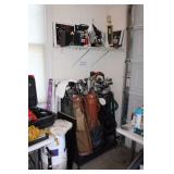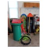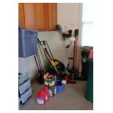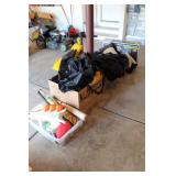 Plastic bins and organizers Assorted lawn and garden Propane tank Tools Power tools Flotec utility pump Materials and hardware Vintage tool box Golf clubs and bags Vintage toboggan Decor Christmas lights Moving dolly Bags Toys Shiatsu Massaging Cushion Boys BMX bike Hose reel Craftsman lawn mower Wood ladder Aluminum extension ladder Basement