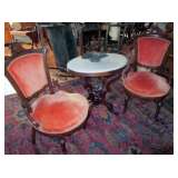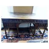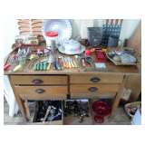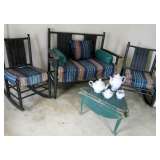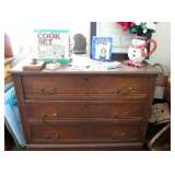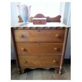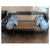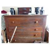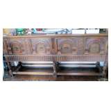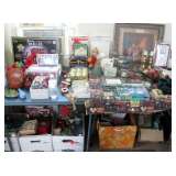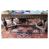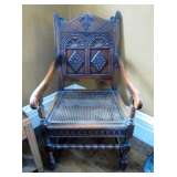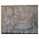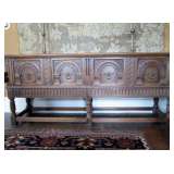 Great Estate Sale! House, Barn and StudioClick on the tapestry below for a sneak preview.Click on the table below to see photos for this sale.Furniture - Antique detailed carved Jacobean dining table w/ self-enclosed leaves/extenders and chairs, buffet, and server, carved Jacobean five drawer desk, square oak claw foot table, early harvest table, round pine tavern table, marble oval stand, walnut Eastlake commode, Henderson Mahogany Dresser, Victorian settee, Victorian ladies side chairs, Victorian walnut marble top dresser, Victorian walnut bookcase desk, Depression twin high poster beds (2), vanity w/ mirror, curly maple dresser, Early pine country bench settee with rush seat, cushions and pillows, three piece wicker porch set, handyman’s day bed, base of baker cabinet, vintage baby bed/crib, assorted vintage chairs, and more.