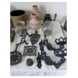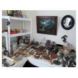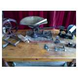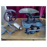 Plus - Large vintage wall tapestry, Oriental rugs, Spinning wheels, large pine blanket box, Early American Iron Lift Gate Style Hand 7 Brass Iron, many primitives, hooked rugs, vintage wooden hat blocks, shoe drying rack, blanket chest, vintage scales, pictures, mirrors, Victorian china tea coffee set, Roseville pottery vase, silver plate, table lamps, crocks, vintage clothes, hats, purses, furs, linens, books, Bibles, wall paper, violin. Miscellaneous - Microwave, coffee pots, Christmas, farm/dairy crates, tools. Please be respectful of our neighbors, do not park on lawns, block driveways, or park near fire hydrants. |