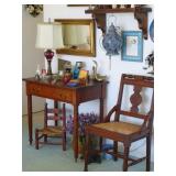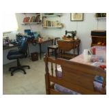 Furniture Hepplewhite dining table, 6 chairs and sideboard Antique work table Mahogany folding chairs Carpet rocker; nursing rocker with cane seat 2 sofa & loveseat sets (one is a sofa-bed) Drop-leaf tables Pair metal barstools Garden potting table Modular computer desk; office chairs; kneehole desk Roll-top desk Console table Dresser, chest & nightstand; bed Twin bed with bookcase headboard Recliner and occasional chairs Patio furniture including double rocker Washer & dryer Also: Electronics: home theater system, flatscreen TVs, stereo/CD players, printers and computer accessories; office supplies Jewelry, fur Cameras and accessories, slides, old postcards, books Lots of picture frames Hand & power tools, garden tools, ladders Fly fishing equipment; other rods & reels Concrete bird bath; wooden pergola Kitchen small appliances, dishes, cookware Mirrors, Ott light and table lamps AND MUCH MORE!