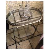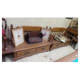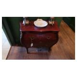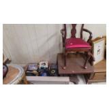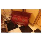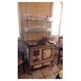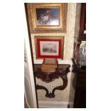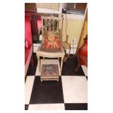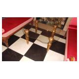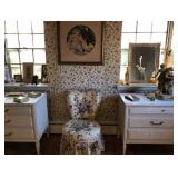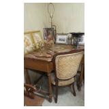FURNITURE: (Picture a French Chateau somewhere in Bordeaux…it’s like that!) · Maslow Freen Black and Fancy Breakfront · Maslow Freen Black Gallery Top Sideboard · Maslow Freen Neo-Classical Black and Gold Console Table · Maslow Freen Black and Gold Hanging Shelf · Round Mosaic Tiled Ice Cream Parlor Style Table · Kidney Shaped Mahogany Table/Floor Lamp with Planter Sections · Neo-Classical Round Occasional Table · Neo-Classical 4-Seat Yellow Silk French Fabric Sofa · Glass and Brass Cocktail Table · Louis XV Style Shadow Box/Vitrine · Gold Leaf Wall Shelf · Rococo Style Gold Fireplace Screen and Andirons · Oak Hutch · Bombay Style 2-Drawer Chest · Triangle-Corner Chair with French Silk Fabric and Matching Foot Stool · Set of Antique Needlepoint Seated Chairs · Pair of Pink Silk Upholstered and Rosewood Chairs · French Provincial Bedroom Set o Queen Bed Headboard o Dresser and Mirror o Pair of Night Stands · Yellow Painted Tall Chest of Drawers · Marble Top Painted Wash Stand · Pair of White 50’s Style Chest of Drawers · Slipper Chair · Gold Low Coffee/Hall Table · Pair of Upholstered “X” Stools · Cane Seat Chairs · Office Chair · Green Painted Side Table · Large Hutch · Merlot Leather Tufted Back Swivel Desk Chair · Wine/Baker’s Rack · Set of 6 Hitchcock Chairs · Pair of Cream Painted Antique Cane Seated French Side Chairs · Antique Tin Black and Hand Painted Warming Box · Wood French Scene Cartouche · Pair of Oak Storage Benches · Pair of White Wrought Iron Side Chairs · Oak Triangle/Corner Desk · Wood Carved 3-Panel Room Screen · Colonial Bombay Style Chest · Hickory Furniture Chest · OUTDOOR FURNITURE o Wrought Iron Benches, Glider, Chairs o Teak Benches