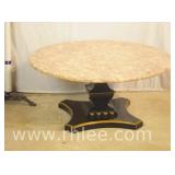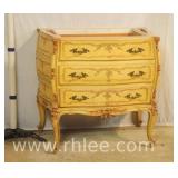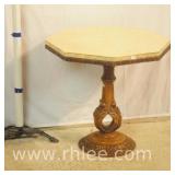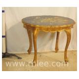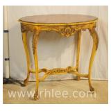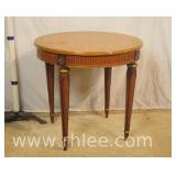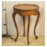 Carved French style lamp table with inlaid walnut top; 55-1063 - ball in claw feet - stretcher base - (finish as-is) - 33x24x30