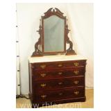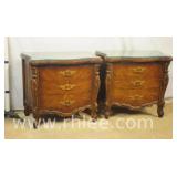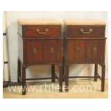 Pair of mahogany step back night stands with marble tops; 55-1073 - can be used without marble - lion head pulls - (slightly loose, finish as-is; molding loose on side ) - 16.5x15x29.5