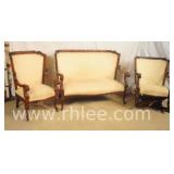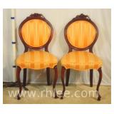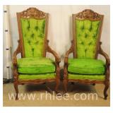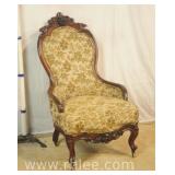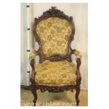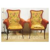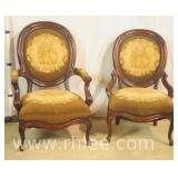 His and her matching Victorian style parlor chairs with tapestry upholstery; 768-101 - (finish as-is) - 27.5x31x39.5 arm chair; 25x27.5x36.5