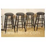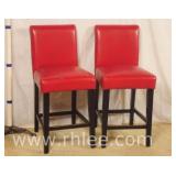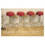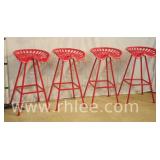 Set of 4 red metal tractor seat bar stools with swivel seats; 55-927 - 17x12x29.5