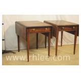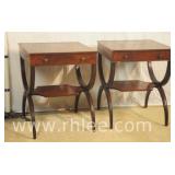 Pair of mahogany single drawer leather top lamp tables; 55-1064 - x legs with shelf - (finish as-is; slight left/right movement) - 22x22x28