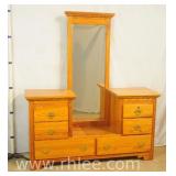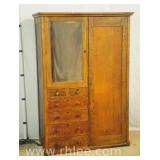 Oak chifferobe with beveled mirror; 55-934 - (finish as-is) - 44x21x64.5